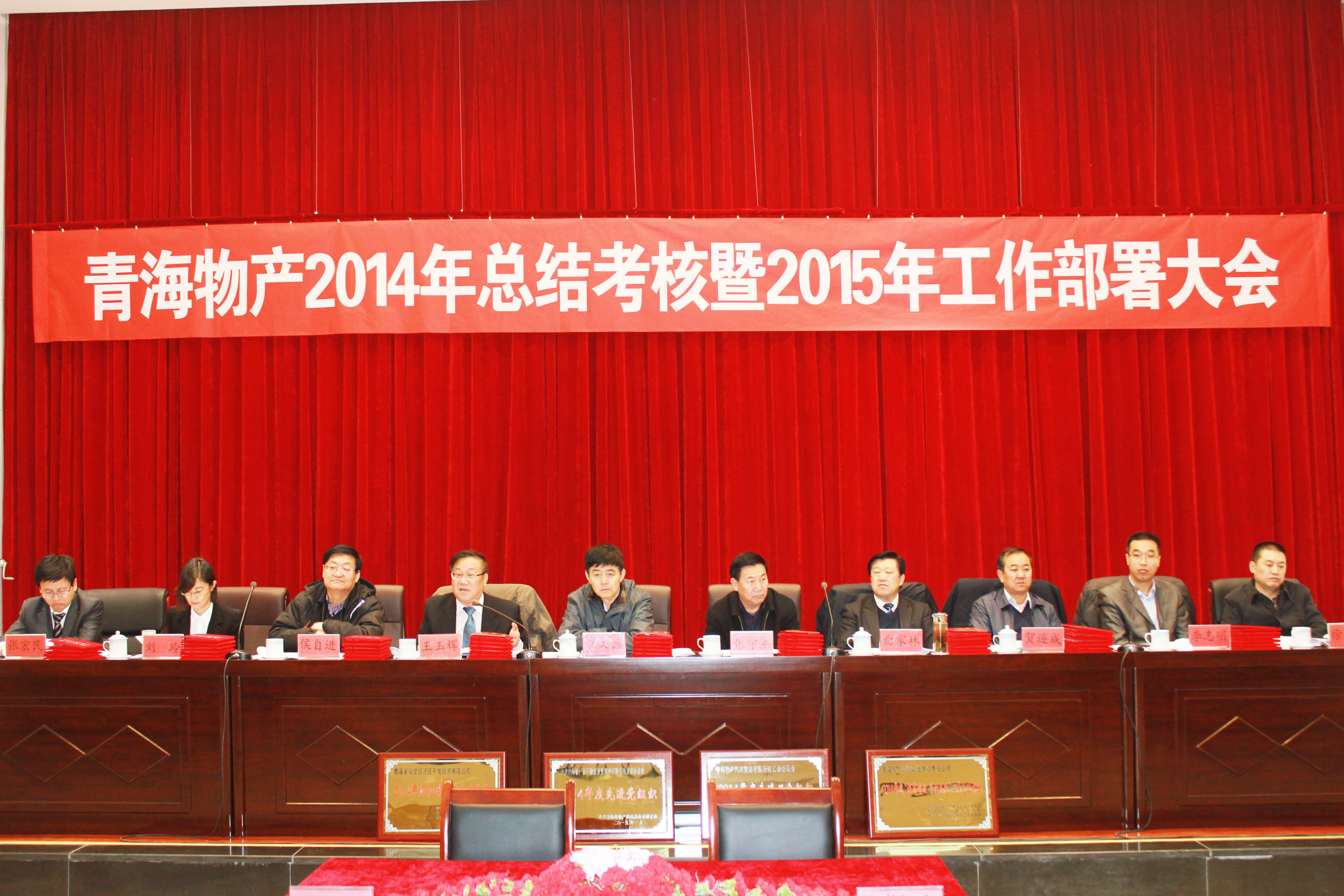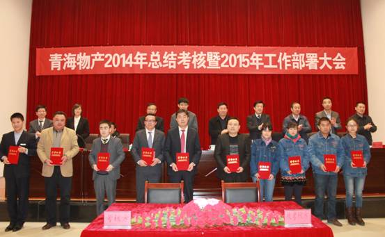 2015年1月31日,青海省物產(chǎn)集團(tuán)總公司召開"青海物產(chǎn)經(jīng)營發(fā)展2014年總結(jié)考核暨2015年工作部署大會"。 會議由集團(tuán)紀(jì)委書記李志明主持,省國資委黨委委員、副主任崔文德,省國資委第二監(jiān)事會主席張守杰、省國資委考核與分配處處長侯自進(jìn)、省國資委黨群工作處調(diào)研員賀連成、省國資委第二監(jiān)事會專職監(jiān)事唐剛、省國資委紀(jì)委干部李世晶蒞臨大會,集團(tuán)領(lǐng)導(dǎo)、所屬各公司班子成員、受表彰人員、離退休人員、總部員工參加了會議。