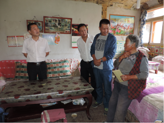 朝物開投公司副總經(jīng)理喇軍民、物產(chǎn)汽貿(mào)公司董事長(zhǎng)張建軍、機(jī)電市場(chǎng)公司市場(chǎng)部部長(zhǎng)王功明以"三幫一"的方式結(jié)對(duì)幫扶絕對(duì)困難戶楊生福。楊生福,男,藏族,61歲,家中三口人,本人肢體四級(jí)殘疾,妻子四級(jí)殘疾(羅鍋),兒子30歲,現(xiàn)安排在當(dāng)?shù)貜氖伦o(hù)林員工作,未結(jié)婚,住房為土木結(jié)構(gòu),此次結(jié)對(duì)幫扶為其送去了600元慰問金。