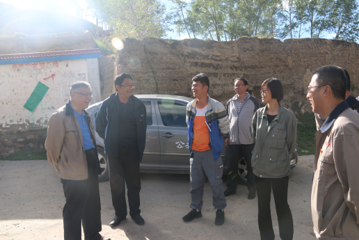 (圖為集團公司調(diào)研組在湟源縣和平鄉(xiāng)草溝村與鄉(xiāng)黨委書記、村委書記交流扶貧攻堅工作)