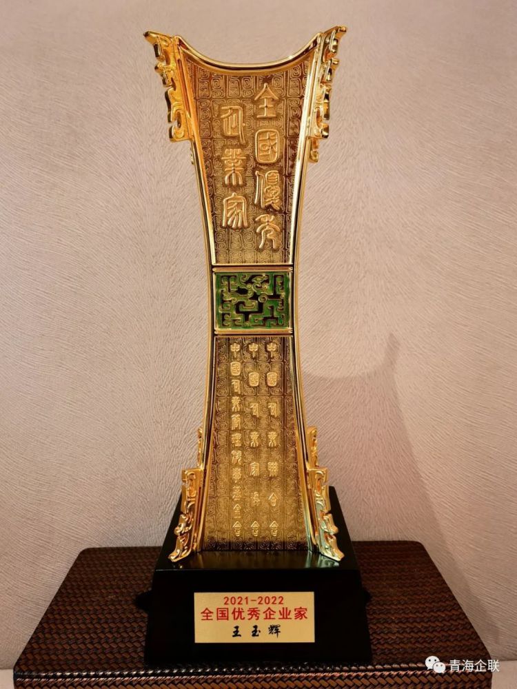 與會領(lǐng)導為青海物產(chǎn)集團黨委書記、董事長王玉輝頒發(fā)獎杯