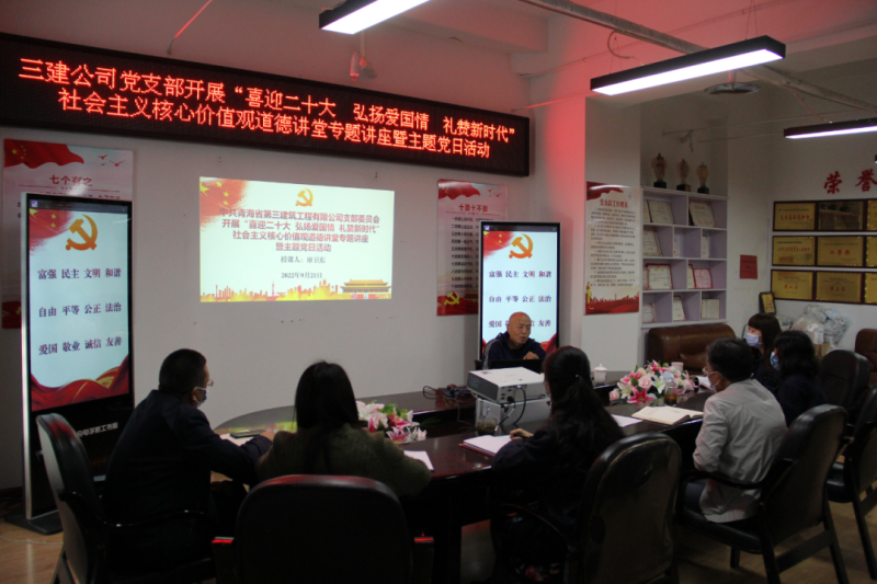 (省三建公司 訊 韓毓、王文杰/文 韓毓/攝 )2022年是黨的二十大召開之年,是落實省第十四次黨代會精神開局之年。為持續(xù)鞏固拓展黨史學(xué)習(xí)教育成果,加強(qiáng)精神文明建設(shè),深化民族團(tuán)結(jié)進(jìn)步宣傳教育和感恩教育,講好各族民族守望相助、團(tuán)結(jié)奮進(jìn)的國企故事,積極培育和踐行社會主義核心價值觀,9月21日,公司黨支部開展“喜迎二十大 弘揚愛國情 禮贊新時代”社會主義核心價值觀道德講堂專題講座暨主題黨日活動。