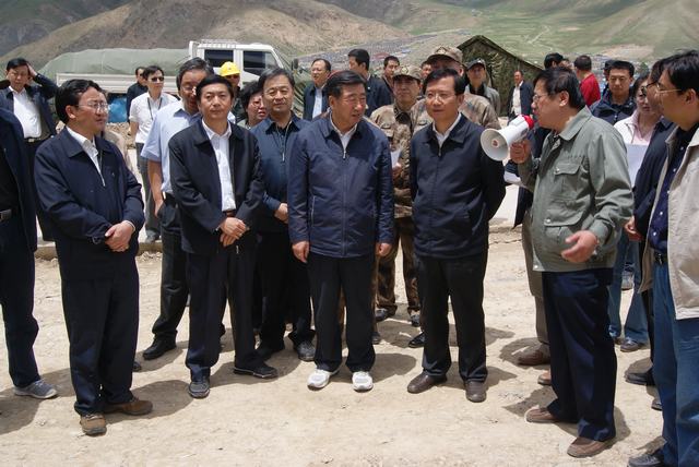 6月19日,中共中央政治局委員、國務院副總理、國務院抗震救災總指揮部總指揮回良玉率領相關部委領導,在青海省委書記強衛(wèi)、省長駱惠寧、副省長馬順青的陪同下,來到正在晝夜施工建設的青海物產(chǎn)玉樹建材物流集散中心,視察災后重建物資儲備情況和集散中心工程建設情況。集團總經(jīng)理王玉輝向中央領導和省領導詳細匯報了建材物流集散中心建設規(guī)模和鋼材、水泥、木材三大類物資收儲情況。同時表示,青海省物產(chǎn)集團總公司將一如既往,全力以赴支援玉樹災后重建,與各路建設大軍一道,為建設美好綠色新玉樹貢獻力量。聽完匯報,回良玉副總理非常高興,并做出重要指示,要做好統(tǒng)籌組織建材物資的采購和調運工作,努力保障供應,確保質量,降低成本?;亓加窀笨偫砑笆☆I導與集團領導、工作人員合影留念。